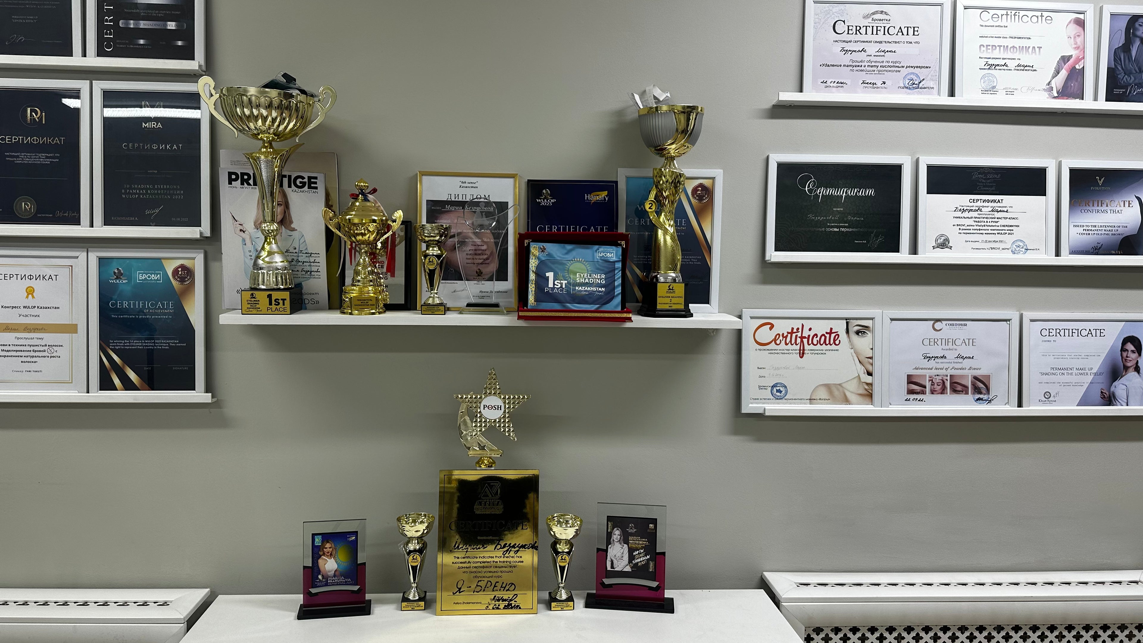 Her talent has earned her international recognition: a bronze medal in 2019 for healed eyebrow shading, a silver medal at WULOP 2021 for "Eyeliner with shading," and the title of WULOP 2022 Champion of Kazakhstan in the same category. She also secured 4th place in the WULOP 2022 finals.